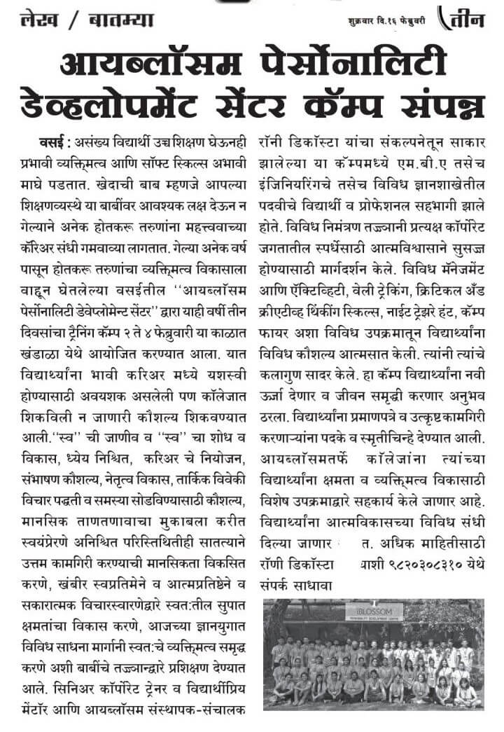 Annually, we organize a camp with an objective to open up the young, budding minds to new experiences. With a host of outdoor activities that lay a solid skill foundation, this 3- day camp goes a long way in making students confident and competent for their career.